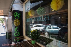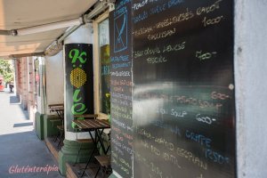 Mielőtt elmentünk első alkalommal a Kölesbe, mi is a neten keresgettünk éttermeket és ütöttük be a telefon útvonaltervezőjébe a címet. Szerencsére könnyű megtalálni a helyet. Az egyedi cégér alapján könnyű megtalálni a helyet, ráadásul a vidám kirakat és a feliratok is hívogatják be a gluténérzékenyeket.